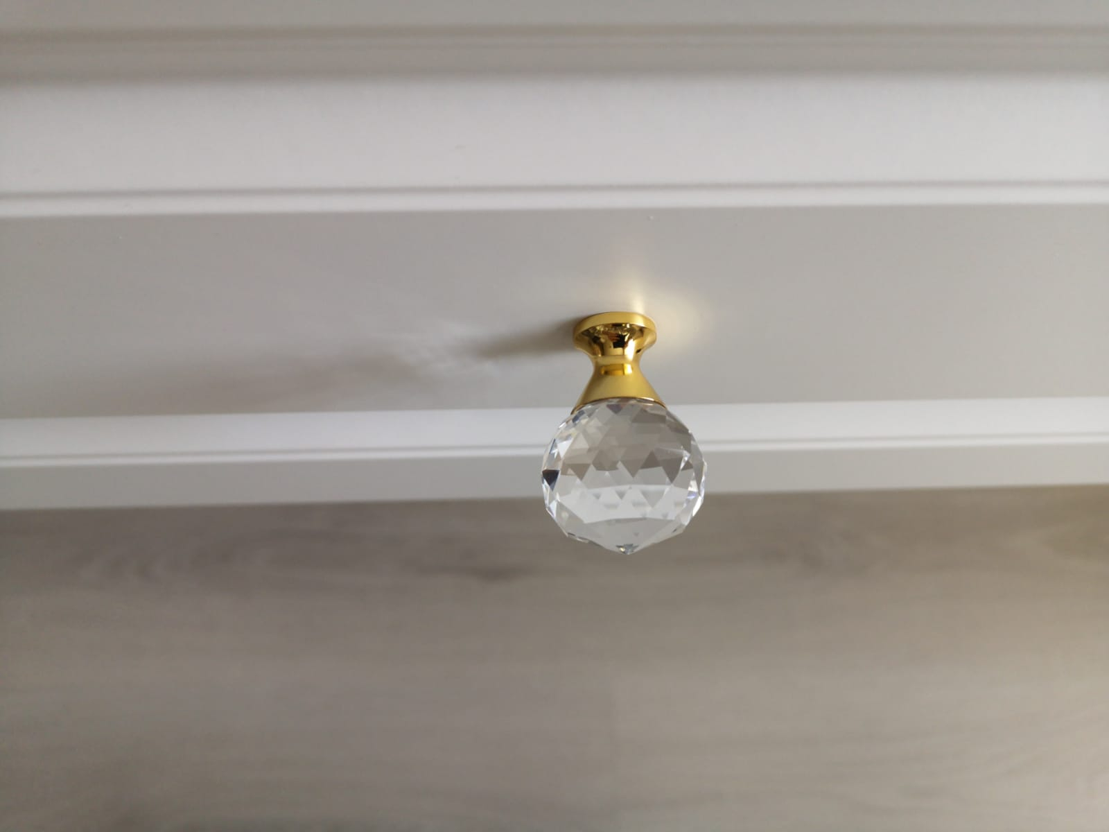 Buton elegant gama Glamour, culoare auriu si transparent (cristal), diametru 40 mm, inaltime 55 mm. Acest produs este ambalat individual in carcasa de protectie si se livreaza cu surubul de fixare.