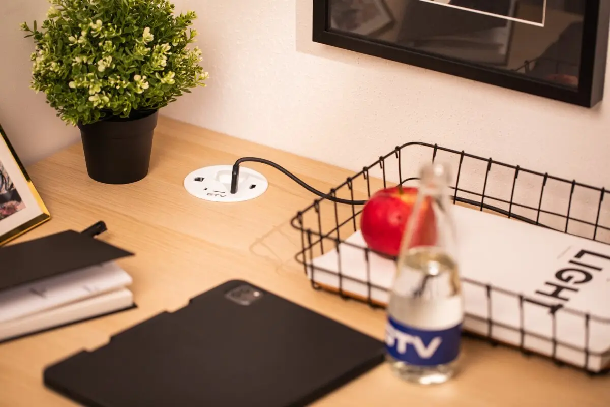 GTV Priza incorporabila RONDO 1 x Shucko, 1 x USB A, 2 x USB C, HDMI, RJ45, cablu 1.5 m, alb mat