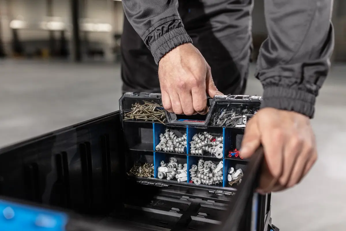 Organizator cu capac din policarbonat cu separatoare pentru a facilita organizarea obiectelor mici.