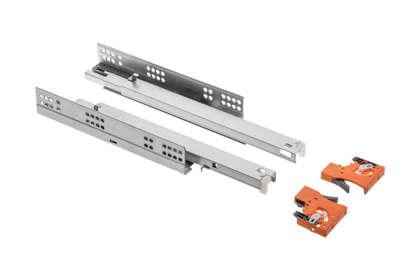 Glisiera 450 mm cu amortizare la inchidere, extragere partiala. Incarcare maxima 25 kg. Se foloseste pentru sertare din pal cu grosimea de 16 mm.