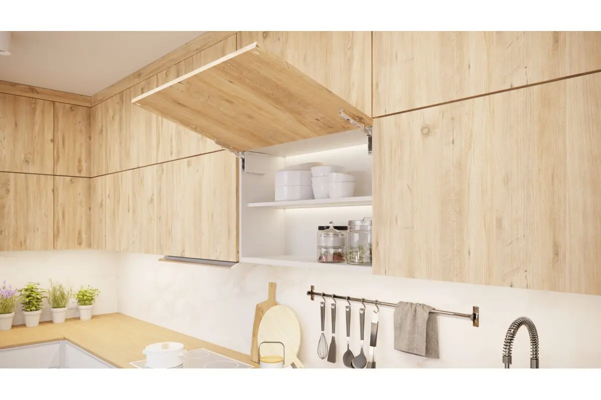 Un mecanism de ridicare mecanic care facilitează proiectarea unor dulapuri suspendate funcționale și moderne. Oferă o mișcare lină și amortizare la închiderea dulapurilor. Permite oprirea clapetei în orice poziție setată de utilizator. Are până la 3 tipuri de reglare: forță, timp de închidere și unghi de deschidere în intervalul de la 90° la 105°. Mecanismul de ridicare va fi utilizat în clapete cu o înălțime de la 300 mm la 650 mm. Alegerea a până la patru variante de rezistență a arcului, adaptate înălțimii și greutății frontului, permite o gamă largă de aplicații. Există 3 variante de culoare ale capacelor de capăt: alb, antracit și negru. Instalare simplă, fără utilizarea de șabloane sau măsurători suplimentare, structura mecanismului de ridicare fiind și șablonul său de asamblare.