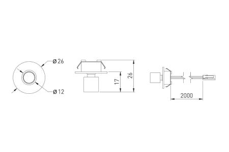GTV Spot LED incastrat POINT MINI, 12V, 0.5W, lumina calda 3000K, cablu Mini Amp 2 m