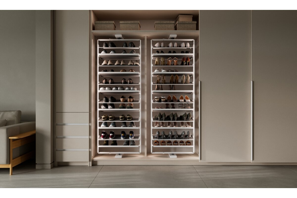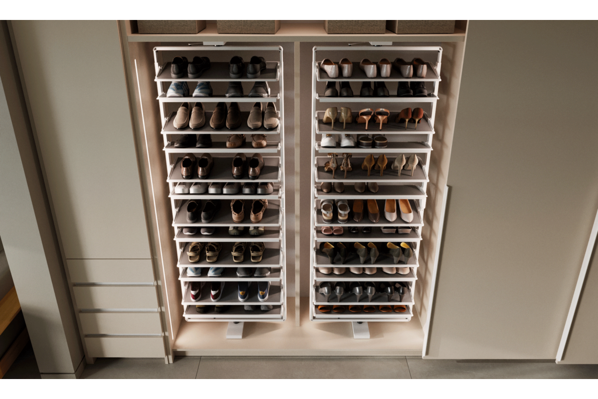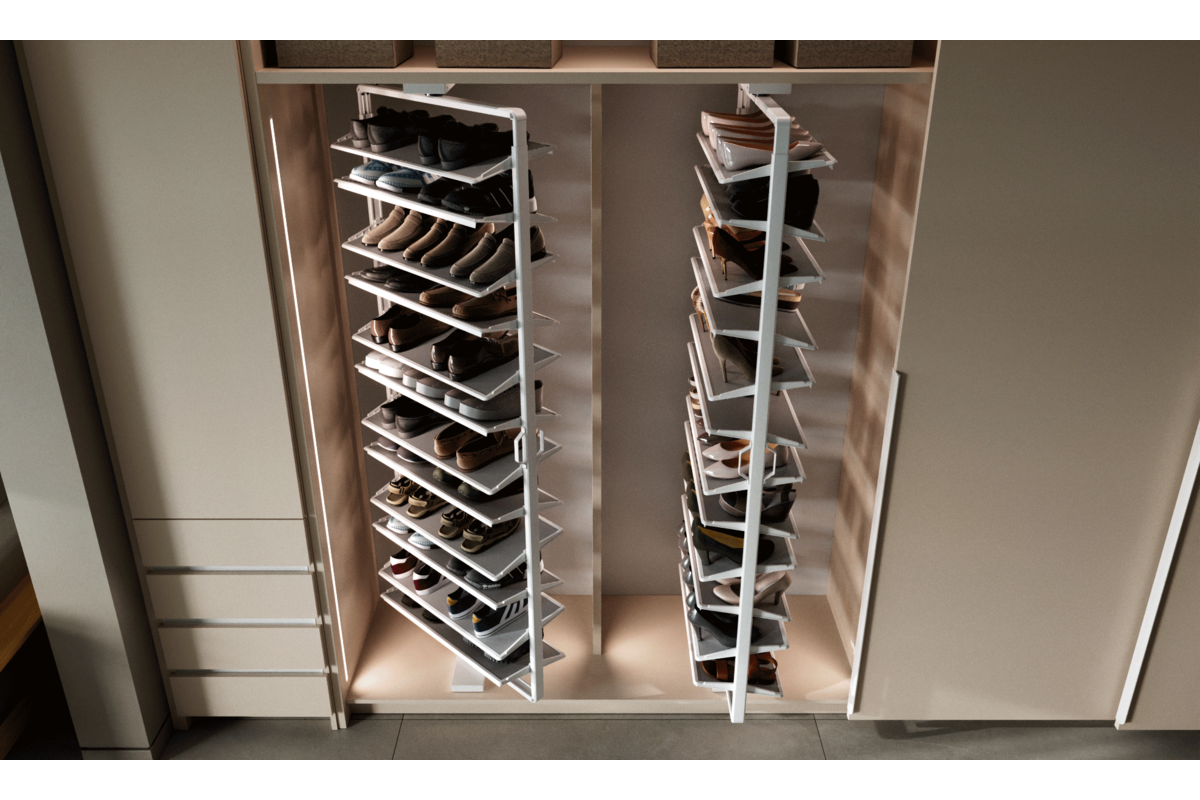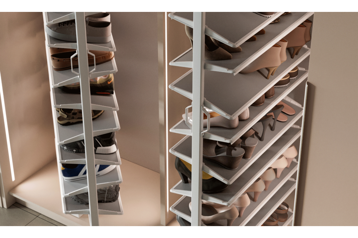 GTV Suport pantofi rotativ ELITE, 10 rafturi, H1610-1760 mm, soft-close, alb