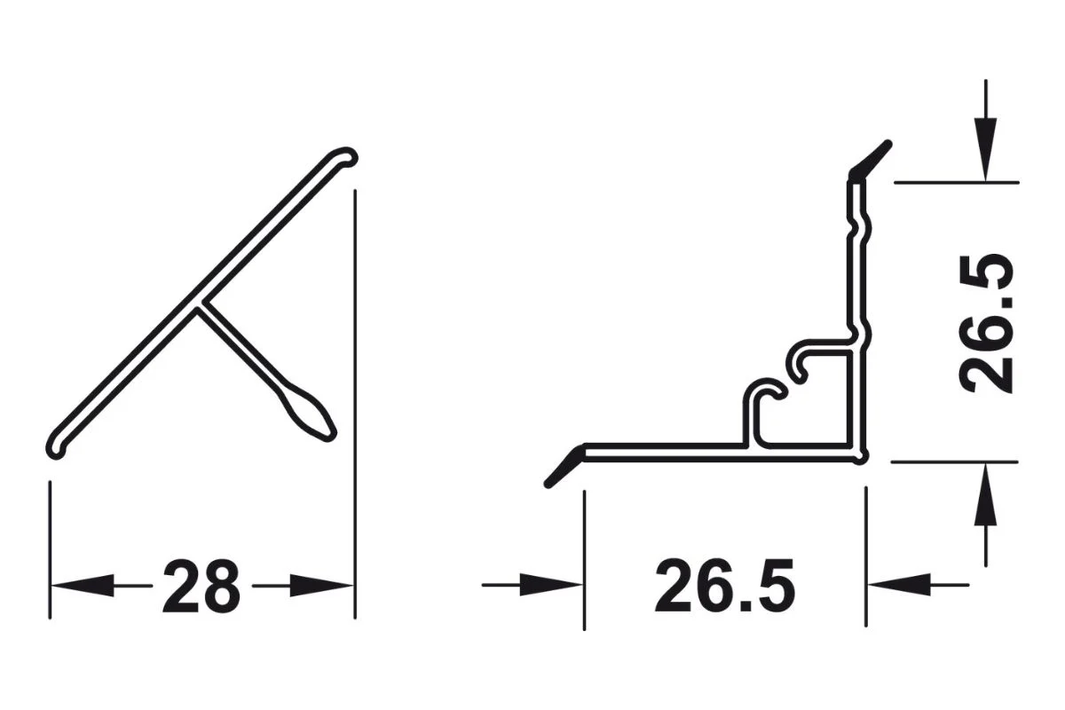 Häfele Inaltator blat triunghiular 30x30 mm, 4 m, alb mat