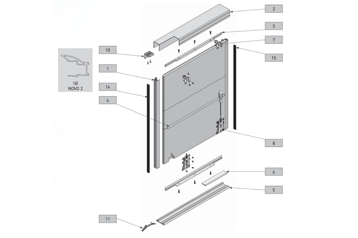 Atentie: sistemul include doar profilele din aluminiu si accesoriile, usile din pal/lemn NU sunt incluse.